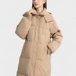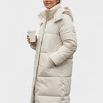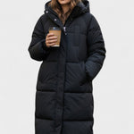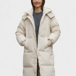 Den forlængede pasform med blødt formet silhuet og praktisk hætte giver et moderne udtryk, mens det quiltede, bløde materiale sikrer varme og bevægelsesfrihed i enhver situation.
