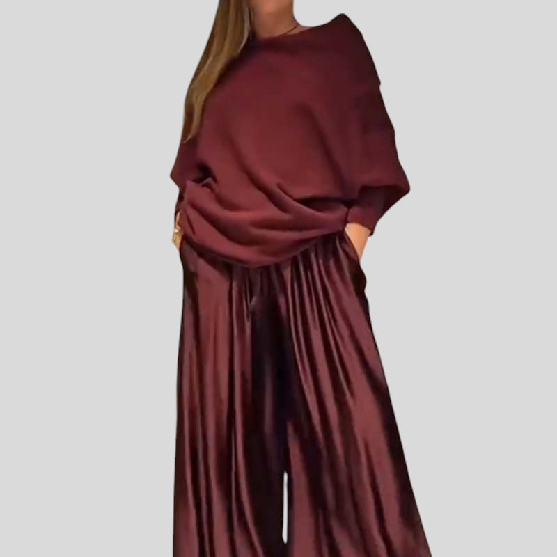 Et stilfuldt sæt designet til kvinder, der ønsker et sofistikeret look uden at gå på kompromis med komforten. Det flydende snit og de bløde linjer skaber et harmonisk udtryk, der bevæger sig smukt med kroppen. Perfekt til både hverdagsbrug, middagsselskaber eller stilfulde øjeblikke, hvor enkelhed og elegance går hånd i hånd.