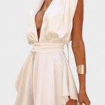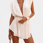 Gitte | Glamourøs jumpsuit udspringer af kompromisløst håndværk og nøje udvalgte materialer, der giver en sart balance mellem struktur og let sommerlighed. Den dybe V-hals og markerede skulderpartier skaber en ikonisk silhuet, mens den svævende kappeagtige nederdel tilføjer bevægelsesfrihed og en let, draperet elegance. Designet står som et kendetegn ved tidløs luksus – perfekt til eksklusive middage og udendørs arrangementer, hvor langsigtet værdi møder moderne selvtillid. Begrænset antal i eksklusiv kollektion lover varig appel og bevidst kvalitet.