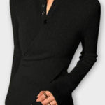Gry | Sort strikketrøje repræsenterer en sofistikeret fusion af tidløs elegance og moderne komfort. Håndværket kommer til udtryk i den tætvævede konstruktion og i den bløde, elastiske bomuldsblanding af høj kvalitet, der sikrer både holdbarhed og åndbarhed. Trøjen følger kroppen med en smal, flatterende silhuet, mens den høje krave og den asymmetriske knaplukning tilfører et distinkt, moderne præg. Gry binder fortid og nutid sammen gennem gennemført detaljering og robust konstruktion, der lover lang levetid. Derved opnås tidløs værdi, som kan gå i arv gennem generationer. Begrænset antal enheder understreger eksklusiviteten og giver ejeren en tydelig samlerværdi i et raffineret fællesskab.