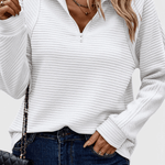 Helene | Striktrøje balancerer subtil elegance med daglig komfort og fortæller en historie om håndværk og omtanke. Den rene silhuet og den elegante V-udskæring med diskret lynlås giver et sofistikeret, tidløst udtryk, der passer både til formelle og afslappede omgivelser. Trøjen er let i vægt og har en løst pasform, der bevarer struktur og holdbarhed hele dagen. Med nøje udvalgte detaljer og en tidsløs arv fremstår Helene som en investering, der fortsat vil være relevant år efter år og tilfører garderoben en diskret luksus.