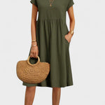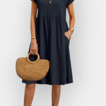 • Silhuet og pasform: Flatterende midikjolelængde, der passer alle kropstyper og giver mulighed for forskellige looks.