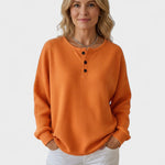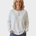 Den fine vaffelstrik omfavner kroppen behageligt, og den løse pasform lader dig bevæge dig frit uden at stramme.