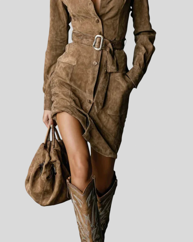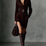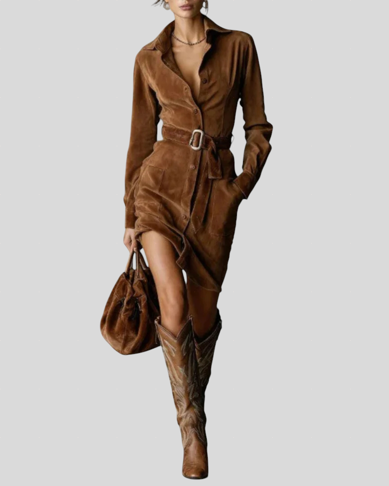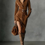 Fløjlsblød midi-kjole med bælte i sofistikeret stil