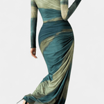 - Kropsnær silhuet følger kroppen og fremhæver feminin skønhed og balance, understøttet af en klassisk rund hals og lange ærmer.