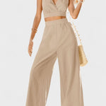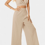 - Silhuet og design: Dyb V-hals, tynde stropper og vide bukser skaber en flydende, sofistikeret silhuet, der passer til både dag- og aftenarrangementer.