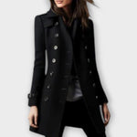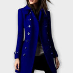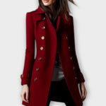 • Design og detaljer: Den tidløse, to-rækkede knaplukning skaber et rent look, mens den tætte silhuet fremhæver figuren uden at hæmme bevægelsen.