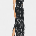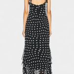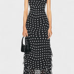 Den Signe-kjole betegner en tidløs fusion af romantik og håndværk. Creme og sorte prikker møder let chiffon-flæser, der bevæger sig med hver gestus og tilfører tekstur til en klassisk silhuet. Håndværket afspejler materialer udvalgt til langvarig kvalitet – en investering i garderobens varige elegance. Justerbare bindebåndsstropper og et aftageligt sjal giver personlig styling, mens den skjulte lynlås i ryggen sikrer et rent, poleret snit. En begrænset serie gør Signe til en ægte samlerappel af tidløs design og håndværksmæssig dygtighed.