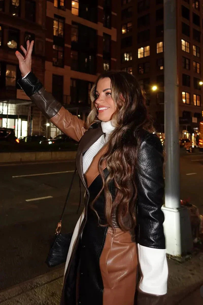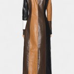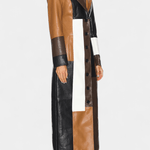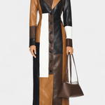 Solveig | Patchwork Trenchcoat forener den klassiske trench med en kontrastfuld patchwork i brun, sort og hvid. Det strukturelle snit og den definerede silhuet fremhæver taljen og tilføjer både styrke og raffinement til en urban garderobe. Håndværk og omtanke for detaljer afspejler tidløs kvalitet, mens patchworkets grafiske præg giver et nutidigt udtryk uden at underminere arv og ekspertise. Produceret i et begrænset antal, står Solveig som en tydelig samlerappel og en investering i langtidsholdbar elegance.