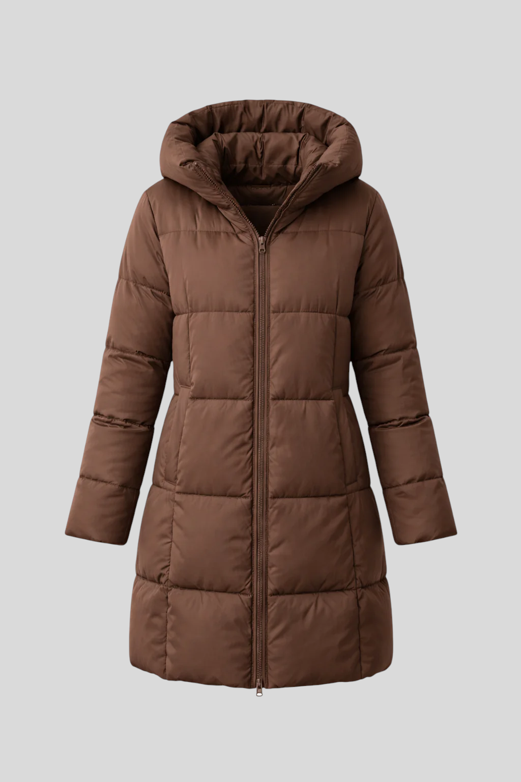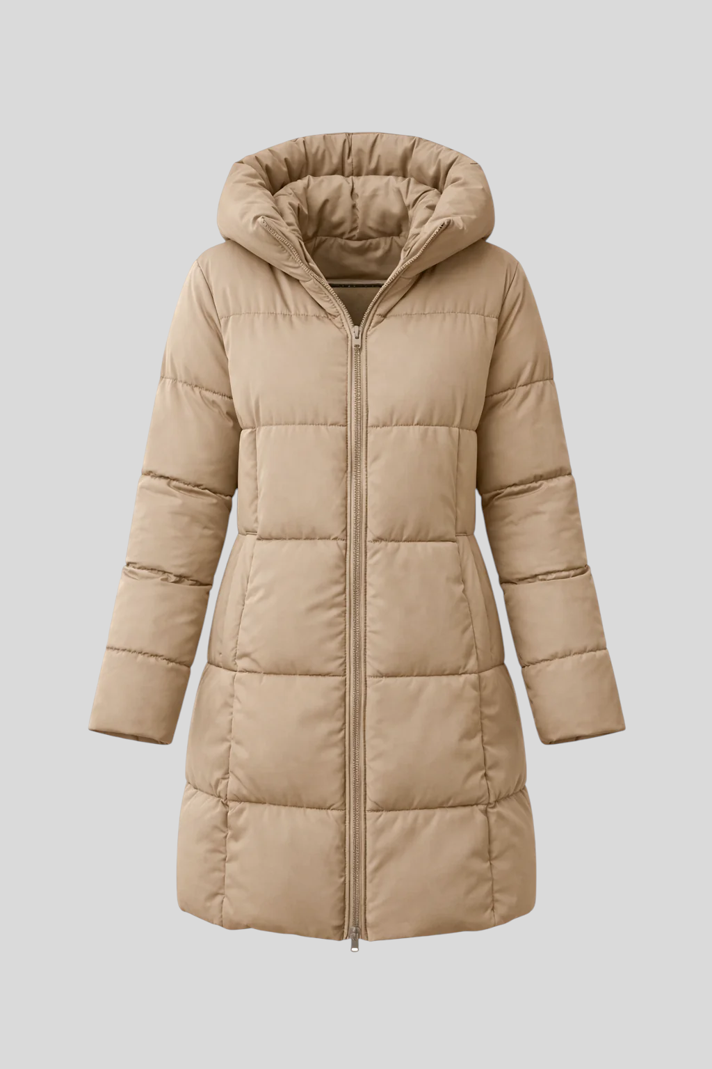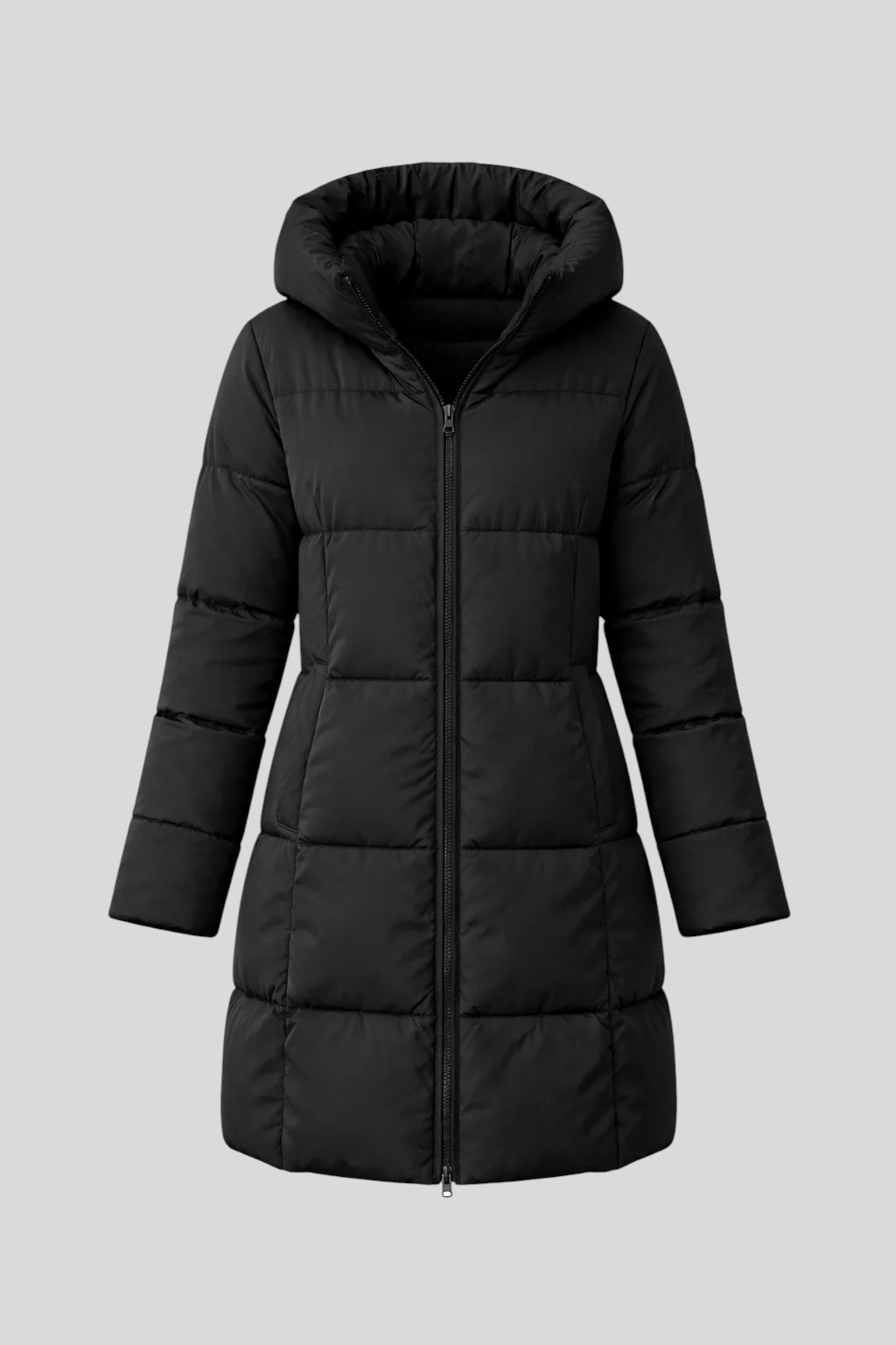Denne jakke er designet til at give optimal varme og komfort i hverdagen. Den forlængede længde skaber en omsluttende og beskyttende følelse, mens den polstrede konstruktion sikrer lethed og effektiv isolering. Den integrerede hætte giver ekstra komfort og praktisk beskyttelse mod kulde. Med et klassisk og alsidigt design er jakken et uundværligt valg til vinterbrug – nem at style til både afslappede og mere velklædte outfits.