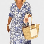 Vibeke er en stilren sommerkjole, der forener romantik og komfort i et tidløst snit. Den hvide bund møder et blå blomsterprint og skaber et friskt sommerudtryk til både dag- og aftenøjeblikke. Udført med omtanke og raffineret håndværk, udstråler Vibeke tidløs elegance, som kan bæres sæson efter sæson. Vibeke bærer stolt dansk designarv og premium håndværk. Den elegante V-hals flatterer figuren, mens en volantkant tilføjer bevægelse og lethed. Det åndbare materiale sikrer behagelig komfort på varme dage, og den rene silhuet gør Vibeke til en garderobeperle til enhver anledning. Begrænset produktion i sæsonen giver eksklusivitet og samlerværdi.