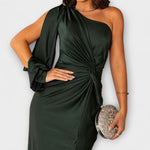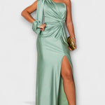 - Siluet og komfort: Én skulder, sculptural linjeføring og sidesplit giver bevægelsesfrihed uden kompromis.